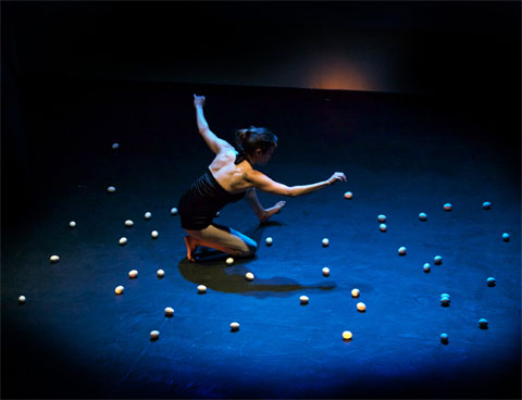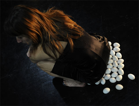 MU: En realidad, todas las ideas vienen desde un lugar muy visceral. No sé qué quería decir. Para mí esto fue como una necesidad, algo que tenía que hacer. No me importaba si estaba bien, o mal, o si a la gente le gustaba o no. Tenía unos textos que tenía ganas de usar, y quería contar por ejemplo esto de que uno quiere buscar en su interior… yo me reía de esas cosas. Me parecía muy simpático contar esto que tenemos las minas de la profundidad y la sensibilidad, pero a la vez algo como de reírse de una misma. Creo que uno se puede reír mucho de sí mismo, y también tocar lugares sensibles, o existenciales. La obra habla también sobre la ambigüedad, las decisiones, o las indecisiones. Después, con la parte de los huevos, yo tenía un tema que tiene que ver con algo muy íntimo. Hay muchas cosas que me gustaban también de trabajar con las texturas, la proyección, el tema de los dientes. No sé qué quería decir, quería decir todo lo que digo.