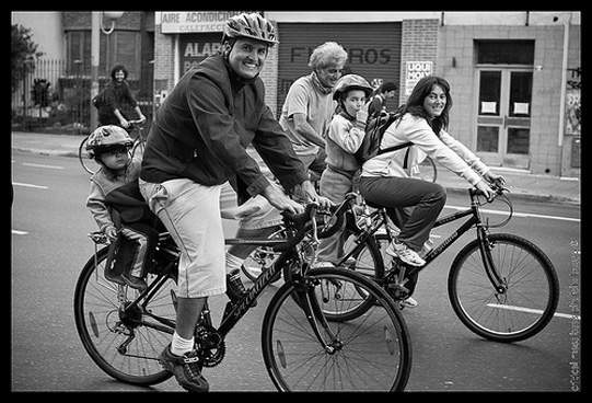 En un mismo lugar, la bicis tienen nombre propio, como quienes las manejan, asimismo, coexisten carritos traseros para llevar a los bebés y canastos perrunos para que todos puedan disfrutar de las calles sin autos, al menos una vez al mes. Sí. Es decir, está todo permitido –hasta las pelucas y disfraces raros- pero cualquier tipo de transporte motorizado no puede participar, obviamente, por cuestiones de principios: mayormente los autos (léase, también, conductores) suelen abrazar el poder del cemento, del semáforo y de la vida de la demás.