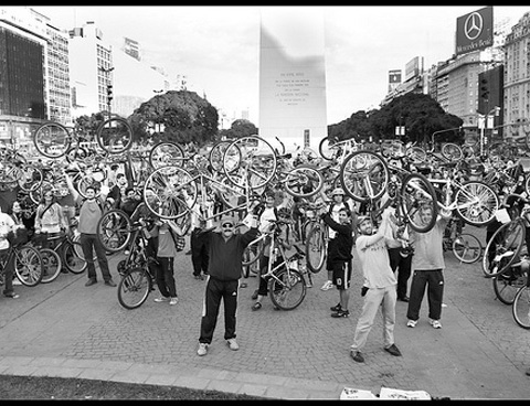 La masa crítica es una conjunción de circunstancias sobre ruedas que pretende unificar diferentes sectores sociales en una fiesta notable con risas y colores en medio de las principales avenidas, sin importar condición, sexo y edad. Todos ellos se reúnen y reconocen en el Obelisco, lugar donde los aplausos indican la largada sin rumbo ni organizador concreto en la primera fila, base primordial para darle sentido a lo diferente, a lo que los chicos de la MC llaman “xerocracia” (burocracia cero y libertad total para hacer). El domingo, a la hora de la siesta, los pedales reclaman, festejan y respetan.