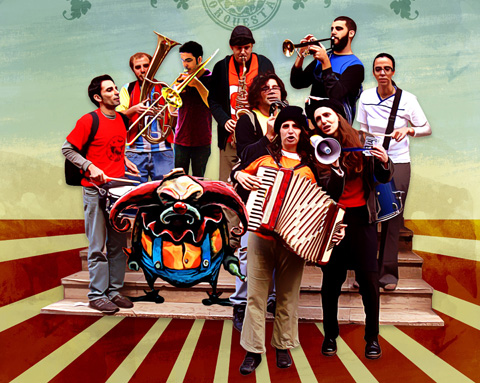 Quizás los hayan visto “marchando” por las calles de San Telmo con un megáfono, un típico bombardino, trompeta, saxos, un acordeón en manos de la mujer que también canta y actúa al mismo tiempo, un señor que lleva a la orquesta y entona con otra mujer que habla alemán o algún idioma indescifrable, y todo se conglomera en una verdadera fiesta interpretada por diez músicos de expresión alegre al pie de la ocasión.